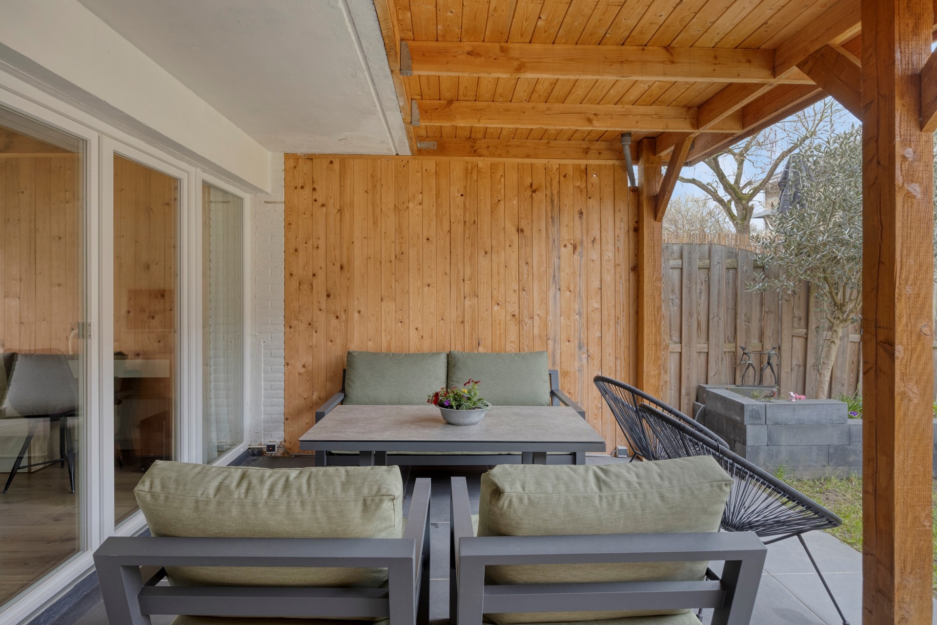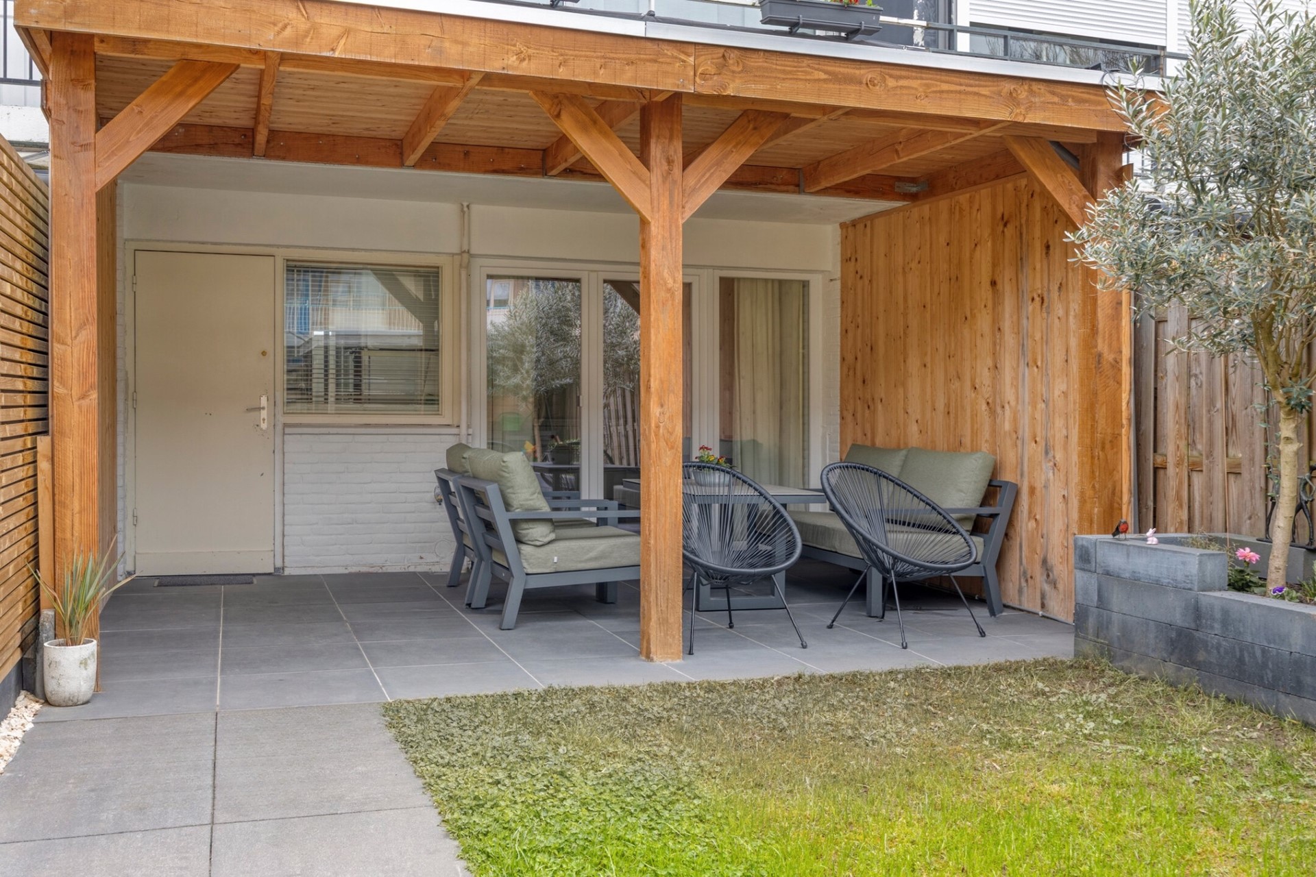 Aan de achterzijde beschikt de woning over een verzorgde tuin met een fijne overkapping en achterom. Hier kunt u heerlijk beschut zitten en optimaal genieten van het buitenleven. De tuin is netjes aangelegd en biedt voldoende ruimte voor ontspanning, spelende kinderen of het ontvangen van gasten.